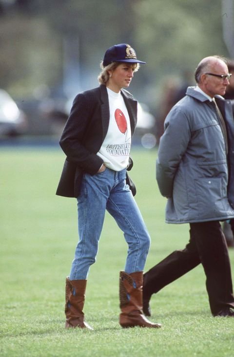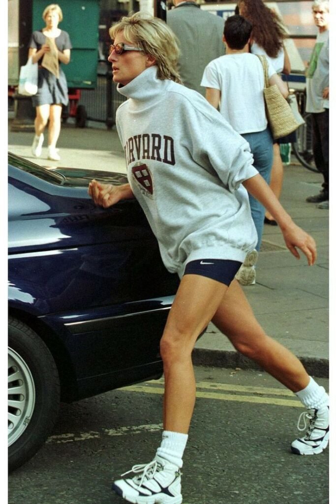 Way before it was a TikTok trend, Diana was effortlessly rocking bike shorts with graphic sweatshirts and chunky trainers. What was once a casual errand outfit is now a fashion-forward statement. She managed to blend sporty and royal in one breath — and it worked.