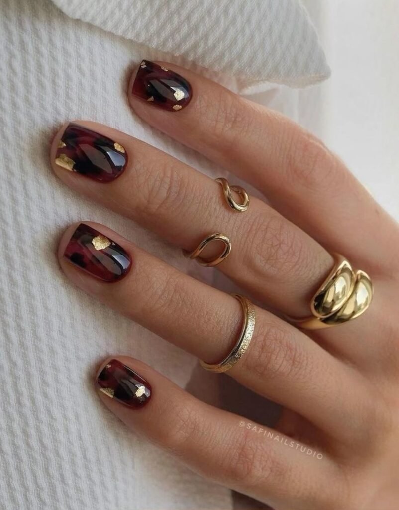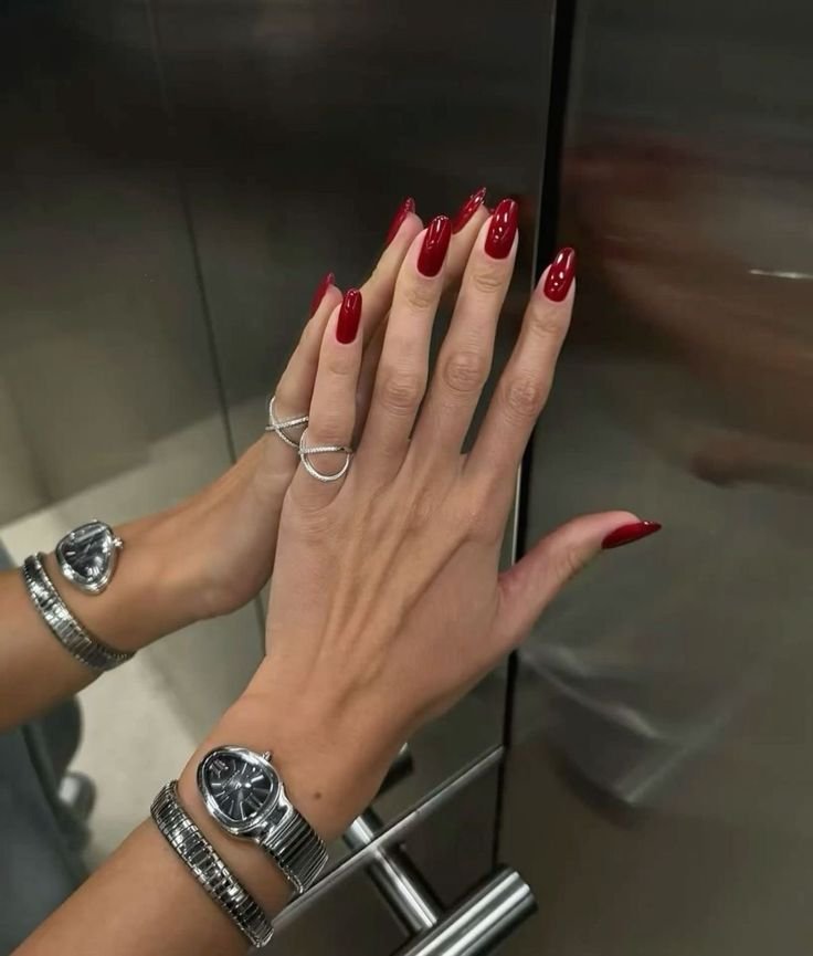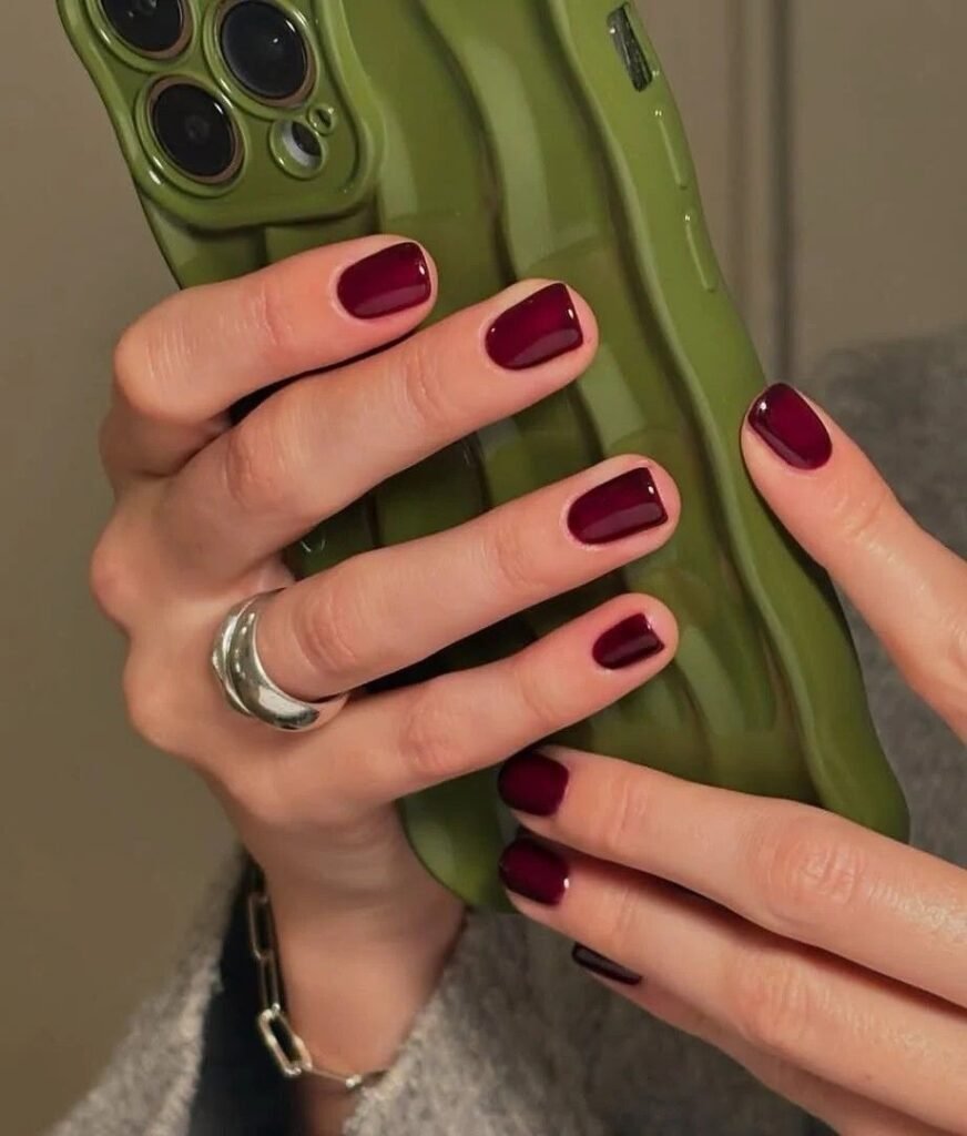 Deep reds are iconic when it comes to fall manicure ideas. Burgundy, wine, and rich crimson shades bring elegance and luxury to your nails.