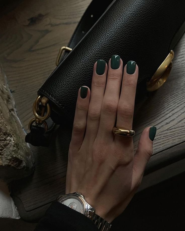 Dark nails look sleek and modern with either a glossy or matte finish. For added flair, accent them with tiny rhinestones or delicate metallic lines.