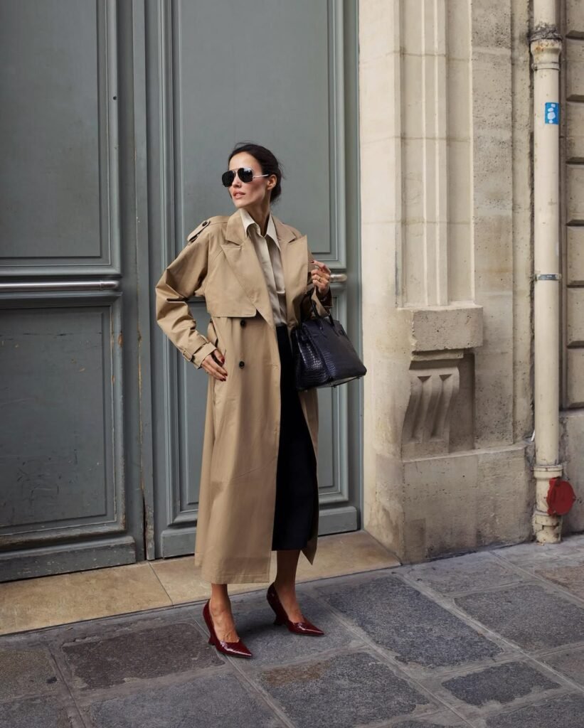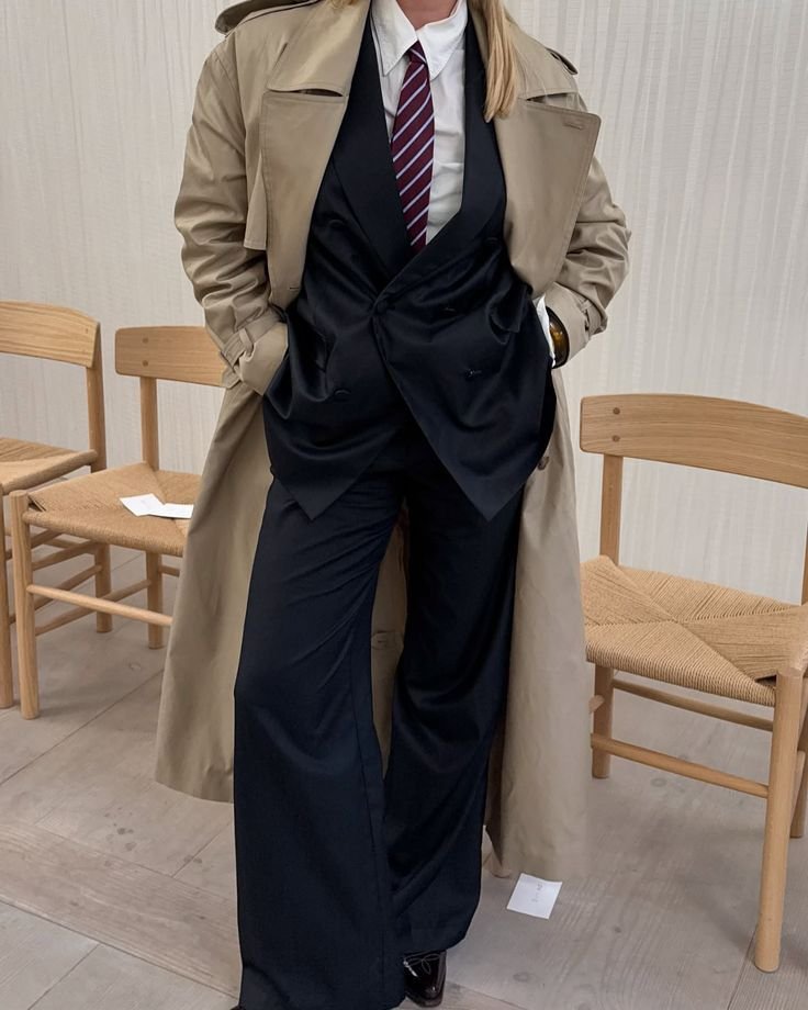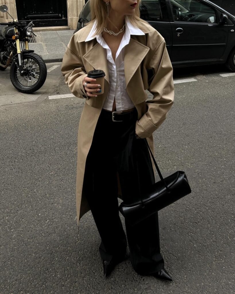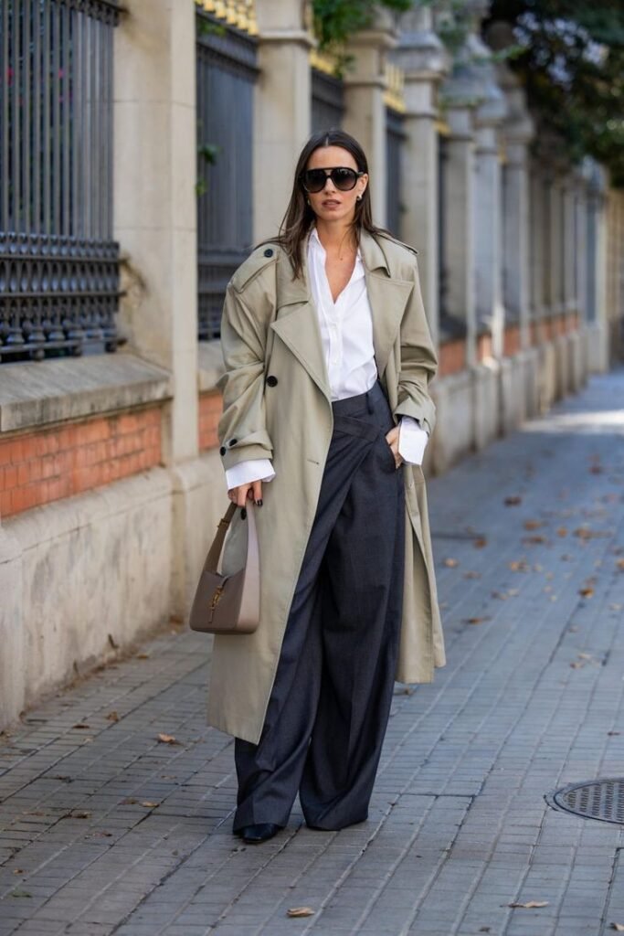 A trench coat is the ultimate transitional piece for fall and a must-have in every professional wardrobe. Beyond being practical for unpredictable autumn weather, it adds instant sophistication to any outfit. Neutral tones like beige, khaki, and soft grey work seamlessly with both warm fall colors and your go-to black office staples. Layer your trench coat over trousers, dresses, or even wide-leg pants for a modern silhouette. Belt it for a sharp, tailored fit or wear it open for a relaxed yet professional vibe. Either way, the trench coat is a wardrobe hero that never goes out of style.